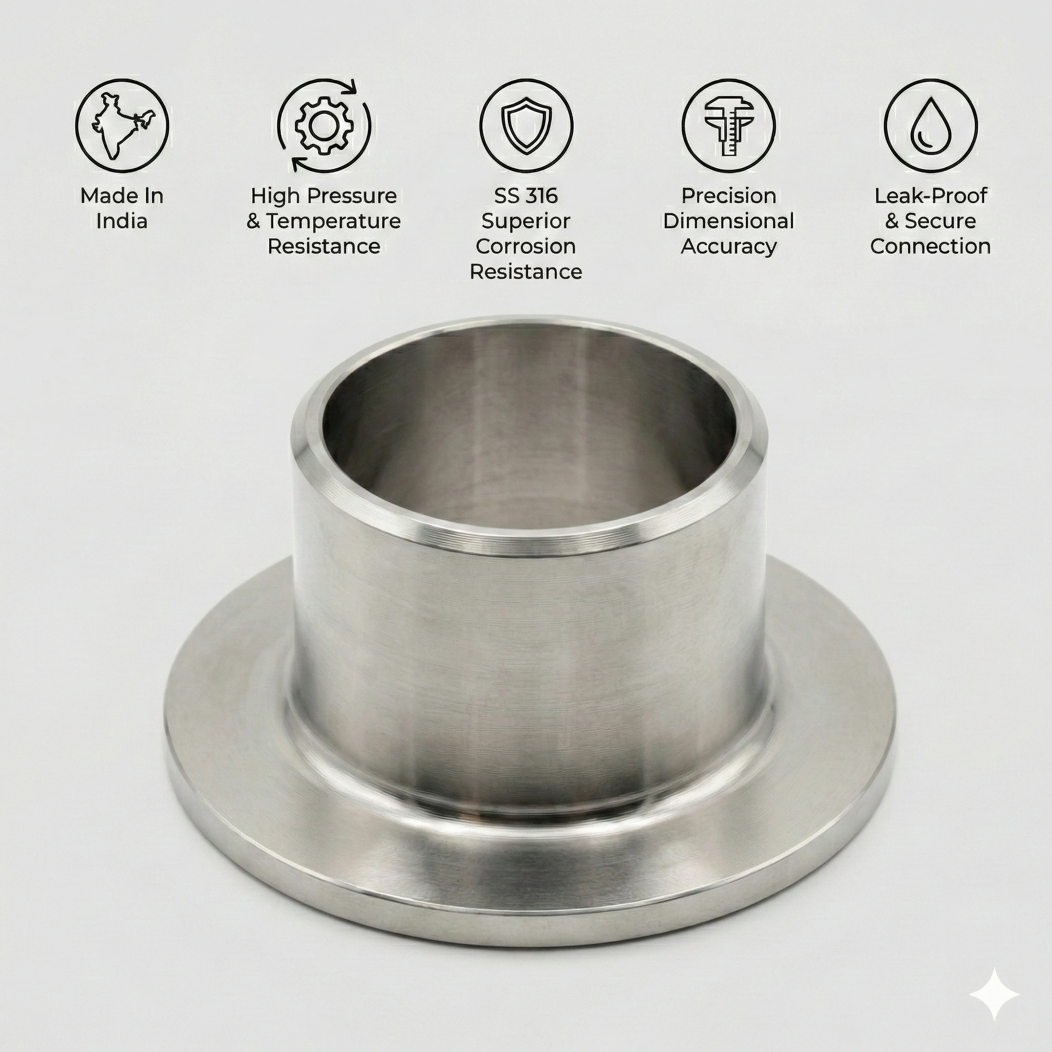 Cost Optimization: By using a high-grade SS 316 stub end with a lower-cost carbon steel backing flange, you achieve the required corrosion resistance at a fraction of the total cost.