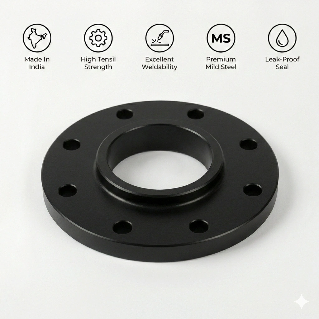 | What is the difference between MS and CS flanges? | Mild Steel (MS) is a type of Carbon Steel (CS) with low carbon content. While often used interchangeably in general terms, "MS" usually implies a general-purpose, lower-tensile grade compared to "A105 Carbon Steel." |