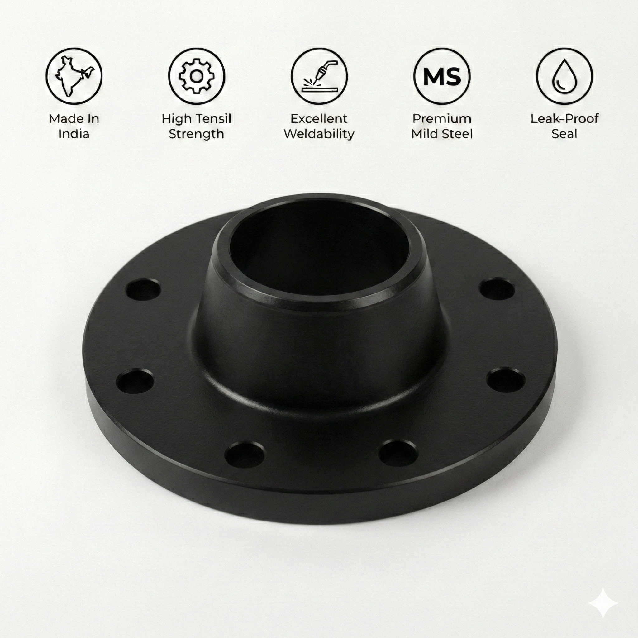 Can MS Weld Neck flanges be used for high temperatures? Yes, Mild Steel retains good strength at moderate-to-high temperatures, though specific carbon steel grades (like A105) are preferred for extreme heat.