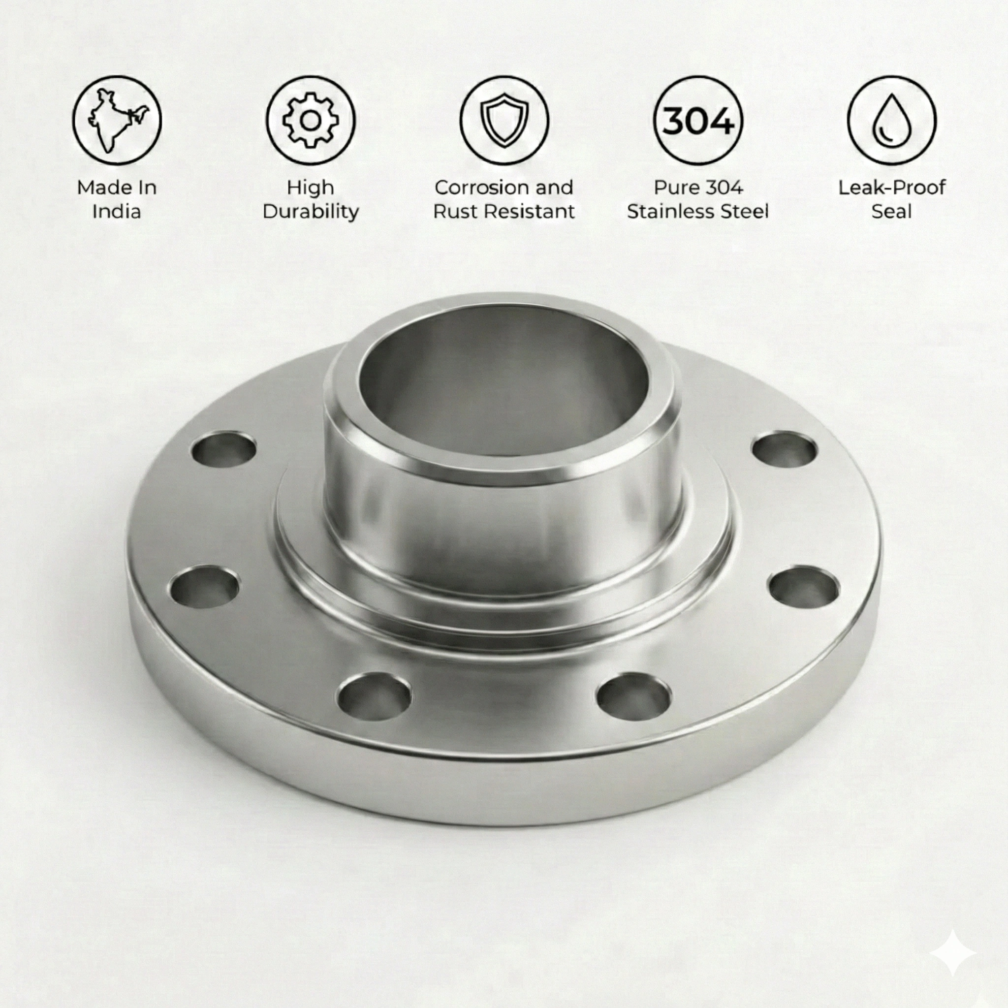 What is the difference between SS 304 and SS 316 for this flange? SS 304 is a versatile, cost-effective grade for general use, whereas SS 316 offers higher corrosion resistance for saline or highly acidic environments.